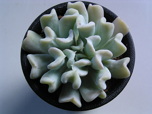 ぽってりした白粉を帯びた肉厚の葉が特徴です。(写真:国内)