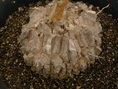 塊根を見せて立ち上がりを見せる植物。(写真:国内)