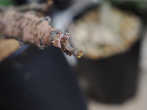 サボテンのような刺を持つトウダイグサ科多肉植物。のちに枝打ちして群生する。(写真:国内)