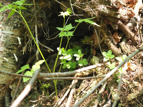 葉が4枚で輪生しており、白い小さな花が咲きます。他の草などにまぎれてしまいそうで、やや薄暗い場所に育っていました。(写真:国内)