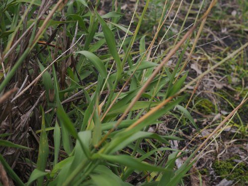 八丈の海側の礫地に自生していた。穂に芒はない。よく見れば、先に雌蕊が出て萎れたのち雄蕊が出ているように見える。自家受精を防ぐための工夫か?(写真:国内)