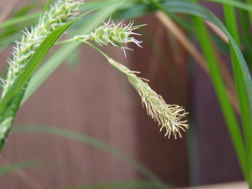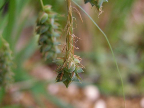 日当たりの良い河原や道端などに生えるスゲ。穂が長くやや垂れ下がるようになる。(写真:国内)