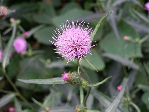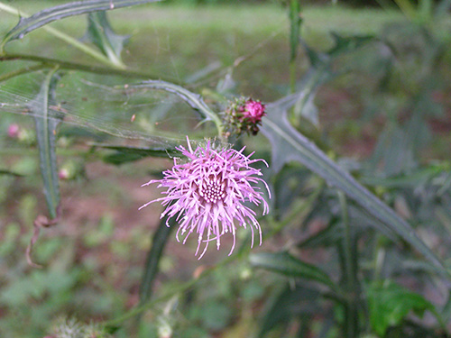 草原などに自生するアザミ。名前のタイは痛いと書き、確かに刺が鋭く細いので藪に入ったときこの葉がズボンなどに刺さりとても痛いのです。(写真:国内)