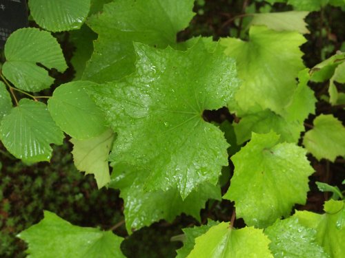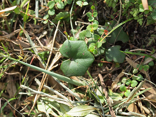 葉の形は丸だが縁は浅く切れ込むようになっている。花茎につく托葉のような部分が細長いのも特徴。(写真:台湾)