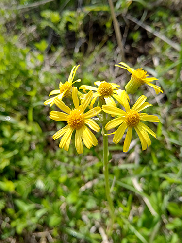 山地に見られる植物です。黄色い花ですが、なぜ舌状花は5枚だけなんでしょうね?(写真:国内)