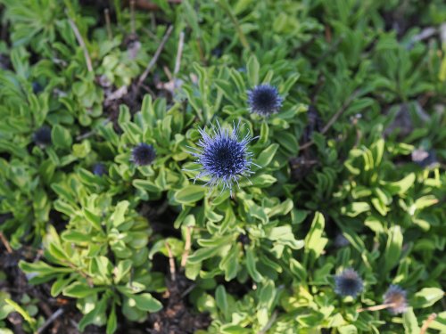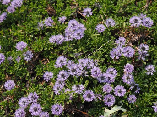 初夏に青い花を咲かせる。マット状に広がる。(写真:国内)