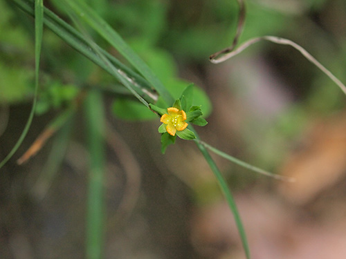 うっかりすると踏んでしまいそうになる小さな草花。花は黄色で1cmほど。他の植物にやや埋もれ気味に育っていました。八丈島で見たコケオトギリは富士のものよりもよく育っていていました。(写真:国内)