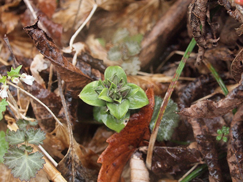 葉が細長く這うように横に広がり小さな群落を作る。中海抜以上に自生しているリンドウの仲間で台北近くでは陽名山で見ることができる。まだ、春に赴いたことがないので時期が来たら行きたいものです。(写真:台湾)