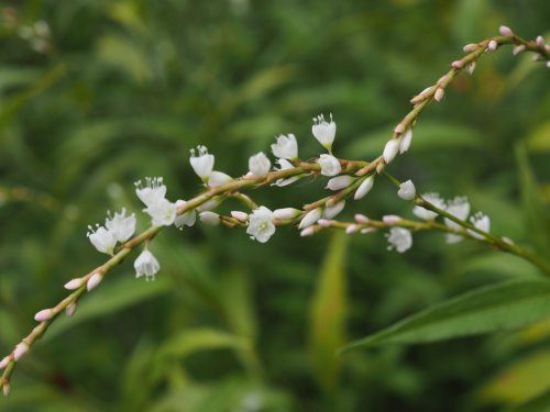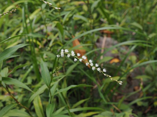 花は密生状態ではなく疎で白い花が咲く。群生で咲いていると綺麗。(写真:国内)