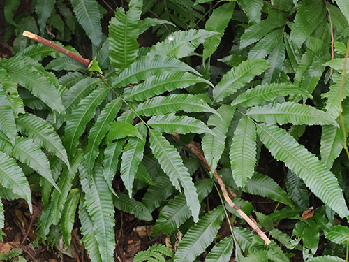 形の整った綺麗なシダ。湿った場所に見られる。台湾の公園では水の流れの場所に植栽されていた。(写真:国内)