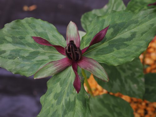 綺麗なトリリウム。葉が迷彩柄で面白い。(写真:国内)