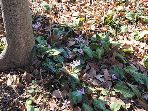 | 特徴など:本来なら片栗粉のカタクリはこちらだが現在はジャガイモのでんぷんとなっている。春の花として山野や山中に咲く花で、一時は乱獲などで自生地は激減したという。今は植栽や種まきなどをして、手厚く保護されているようだ。葉が一枚のときは花は咲かない。葉の模様も個体差があるようだ。(写真:国内) |