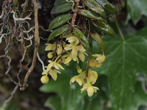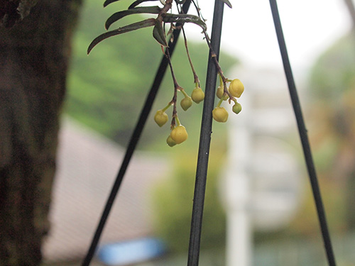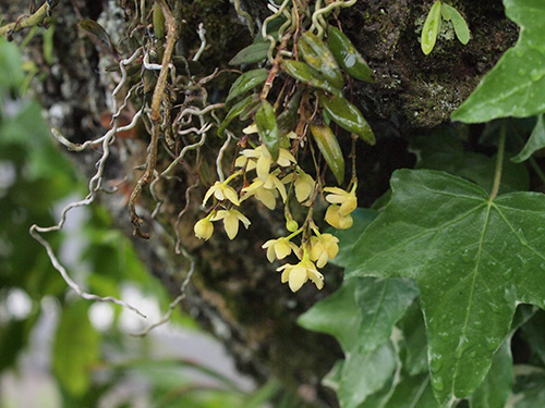 あまりにも高いところで、望遠でもちょっとって感じです・・・。しっかりと幹にくっついております。(写真:国内)