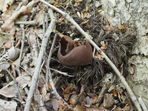 茶色(栗色?)をしたキクラゲのようなキノコ。食べられないキノコ。(写真:国内)