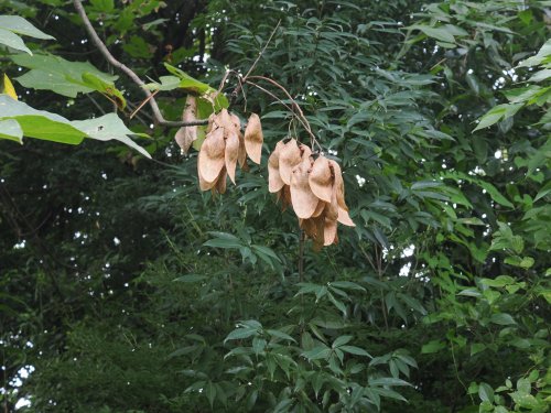 成長が早く幹肌が結構大きく育っていてもグリーンをしている。都心では街路樹に使われている。7月ごろに花を咲かせる。種子は食べられる。材は家具材などに。(写真:国内)