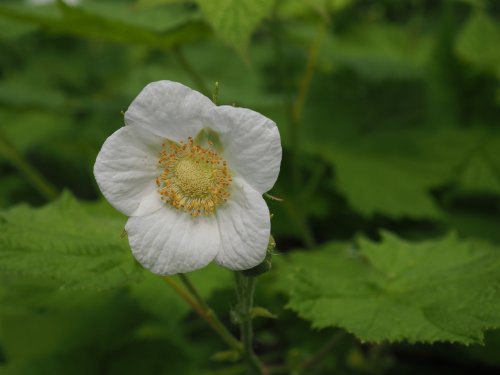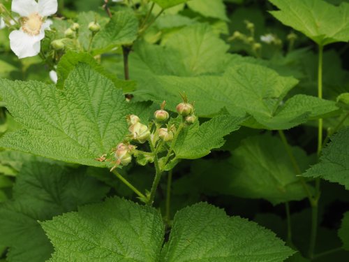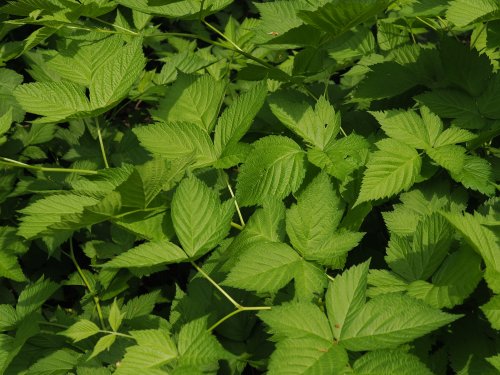 ほかのフユイチゴよりも葉がやや薄く丸くなくやや細長く感じる。(写真:国内)