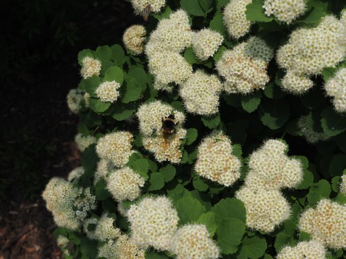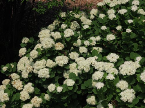 | 特徴など:高さが1mくらいの低木。散房花序。果実は袋果。5月ごろから新しい枝の先に花が咲き、花色は濃い赤ピンクだが変異が多い。花径は3mmくらいで五弁。名前は最初の発見地の下野(栃木県)に因む。最近は葉が黄金葉の種類[ライムマウンド]や黄金葉で新芽が赤みを帯びる〔マジック・カーペット〕が出ている。(写真:国内) |