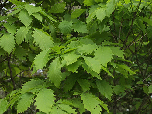 | 特徴など:柏餅で知られるカシワ(柏)。丸みのある鋸歯(?)で葉は他のこの仲間の中では大きいです。カシワにも虫こぶを作る蜂のリンゴナラフシがついていた。(写真:国内) |