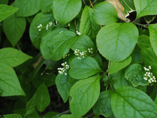 特徴など:葉脈が深い葉を持つ樹木で5月下旬〜6月頃に白い花を一斉につける。この木の灰を染色の媒染剤に利用されている。別名のルリミノウシコロシの瑠璃の意味が9月に成っていた実を見て納得。最初白っぽいけど段々と淡いブルーになるんですな。(写真:国内) |