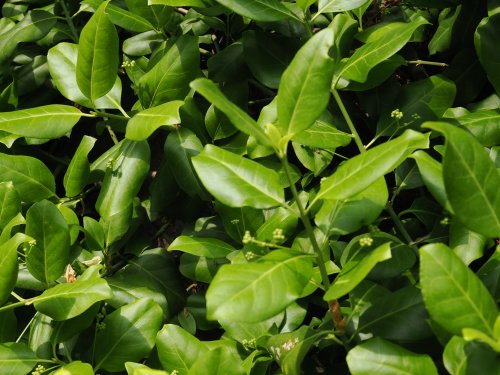 cv.Microphyllus もある。刈り込みに強いので良く垣根に利用されている。しかし、うどんこ病になりやすいので殺菌剤を予防でかけておくことを忘れないように。結構目立ちます。(写真:国内) |