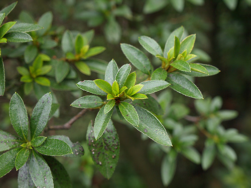 | 病害虫:特に目立つのは葉がかすり状になるグンバイムシの被害だろう。あと、油断をするとツツジチュウレンジバチに丸坊主なんてことになりかねない。早めの防除を心がけること。 |