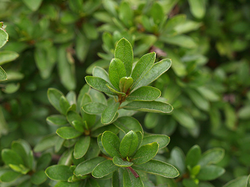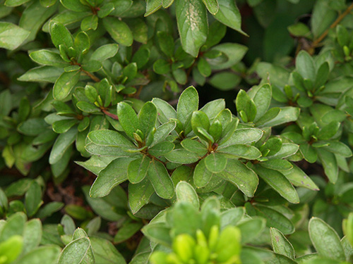 山地に自生するツツジ。春に淡いピンクの花を一斉に咲かせる。数品種が知られ庭木として使われている。若い芽や蕾などがべたべたする。(写真:国内)