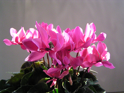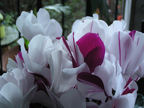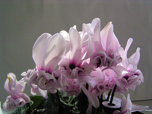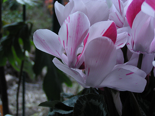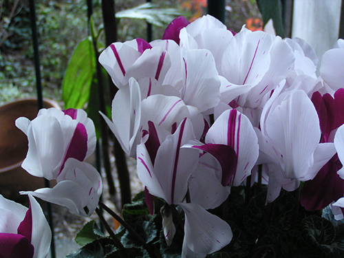 冬の鉢花の代表的な植物。近年、念願の黄色花であるカグヤヒメが出た後多くの黄花品種がでることとなる。毎年少しづつ色々な系統や花型、色が出回る。数種類の原種から良くここまで多くの系統や花型・品種が出来たと思う。特に原種で代表的なものはシ・ペルシクム。(写真:国内)