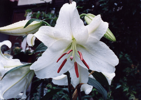 オリエンタルリリーの代表選手。このユリが出てから非常に切花・鉢物・コンテナガーデンなどでユリの認識がより高まったとも言える気がします。一時は非常に高価でしたが、価格は落ち着いていて球根でも手に入り、大きなコンテナなどに植えると存在感があります。茎は良く伸びるので支柱を必ず添えますが、茎が伸びてからさすと球根を突き刺す方がいますので、注意します。カサブランカは品種名なんですが、もうこの花をイメージするほどになりました。(写真:国内)