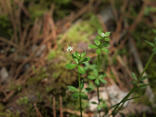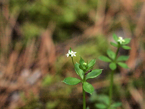 葉が4枚で輪生しており、白い小さな花が咲きます。他の草などにまぎれてしまいそうで、やや薄暗い場所に育っていました。(写真:国内)