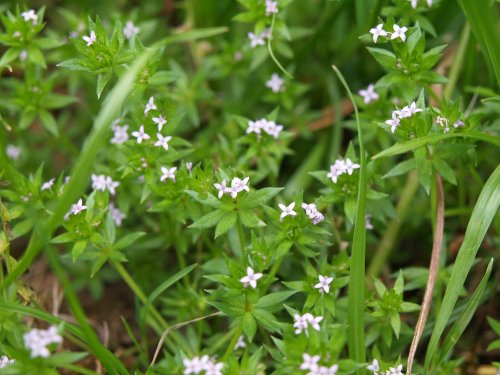 帰化植物。淡いピンク色の4弁の花をつける。生えているところは結構集中して生えているようだが・・・。少し貧栄養の草原では背が低く葉枚数が少ない状態でも花が咲いている。(写真:国内)