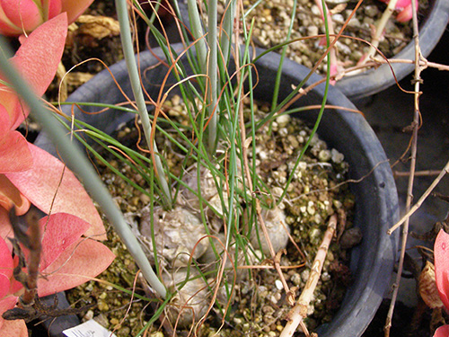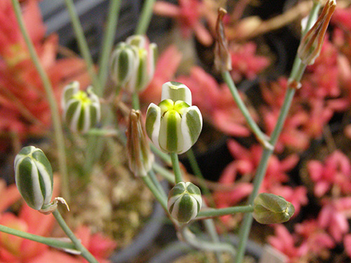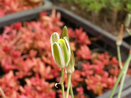 白グリーンの地味な花を咲かせる球根植物。(写真:国内)
