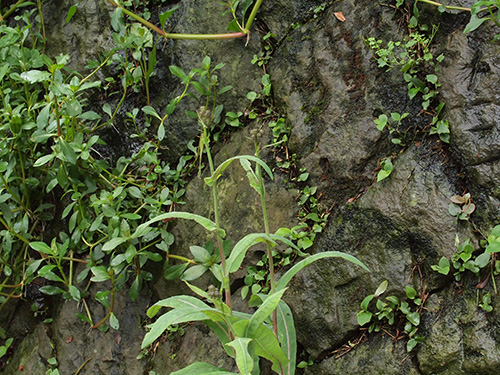 | 特徴など:写真のように道路の割れ目や広場などに生える。古くは有史以前に日本に入ってきたとも考えられているらしい。花はよく咲く。茎を折ると中は空洞になっている。種子は小さい綿毛がついていて風が吹くと多少なりとも散ってゆくようだ。タンポポほどではなさそうだが・・・。(写真:国内/他) |