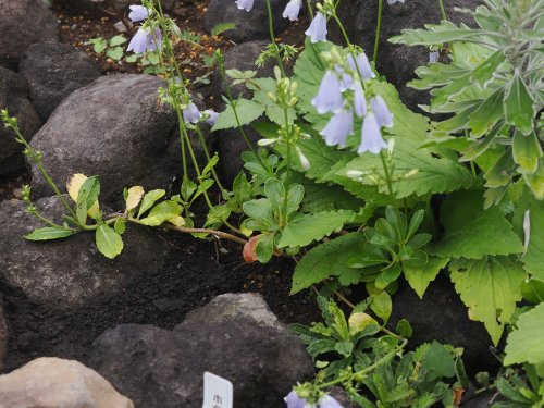 ツリガネニンジンの基準種とのこと。先にツリガネニンジンを見知っていたので意外ではある。淡い青紫色の花をつける。この場所がやや造成気味で荒れているところのためか株が小さめ。(写真:国内)