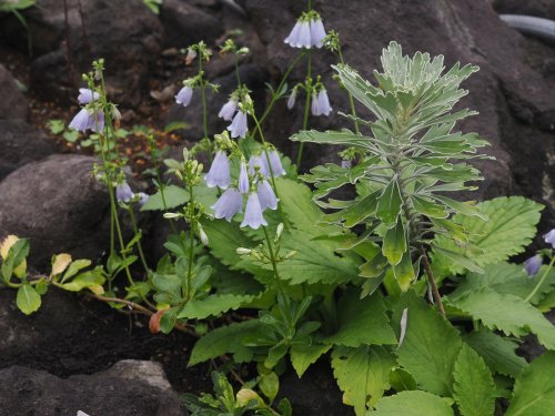 ツリガネニンジンの海岸型らしい。這性で横に広がって生育する。(写真:国内)