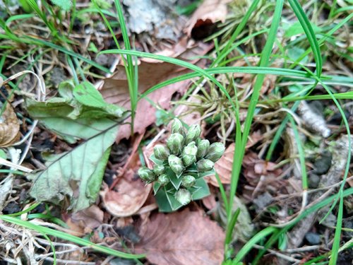 小さい株ながら、春になると土から飛び出したようにも見える淡いブルーの花をつける。場所によって数輪でまとまって咲いています。(写真:国内)