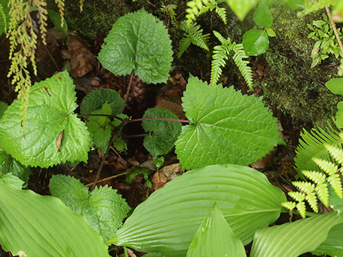 葉を見るとサルビアの仲間には見えず遠めに花を見てもシソ科に見えなかった。花の写真をアップに覗いて あーなるほどと思いました。しかし繊細な葉はセリ科やキンポウゲ科の仲間に思えてしまいます。湿った苔の生える岩などの上に育っていました。(写真:国内)