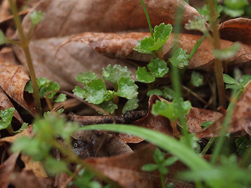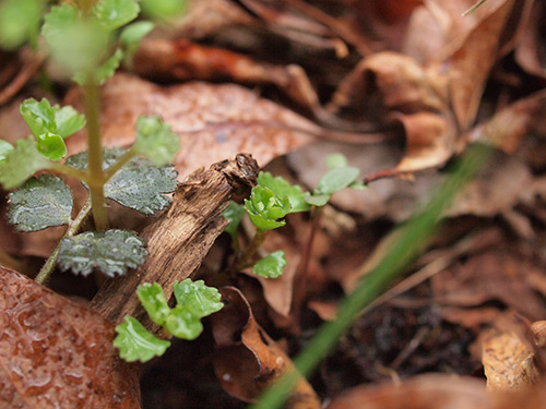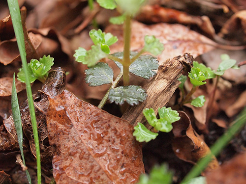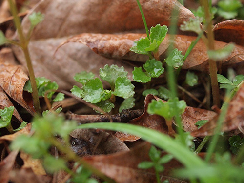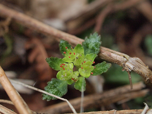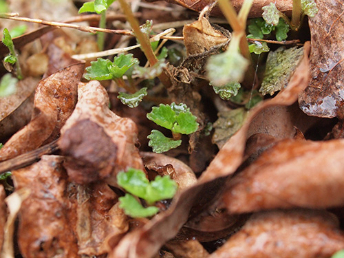 やわらかい感じのするネコノメソウの仲間。やや湿った場所に自生するようだが、枯草などが少し積もった日当たりの良い場所にも育っていました。(写真:国内)
