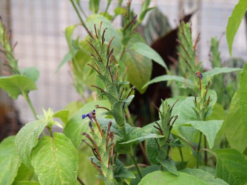 高さが1m以上に育つ多年草。日本には明治末に入ってきた植物。苞に白い脈が入っていてそこから青い花が咲いてきます。上のウォッティーと違って花の上におしべが出ています。育て方はウィッティーと同じです。(写真:国内、西オーストラリア州)