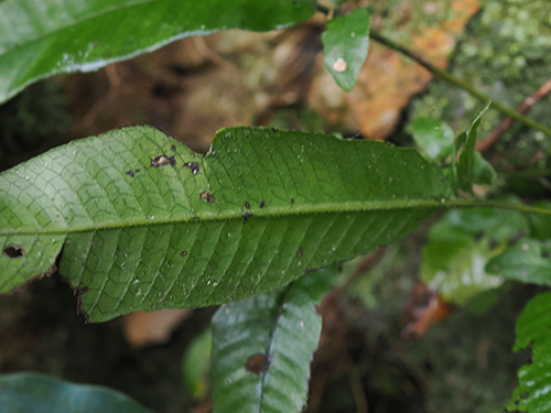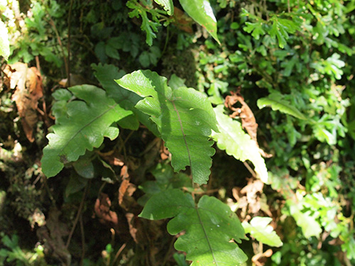 葉が堅めのシダで中型のシダ。葉裏は網目が見える。(写真:国内)