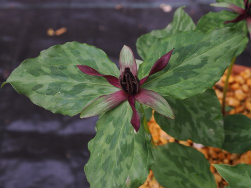 綺麗なトリリウム。葉が迷彩柄で面白い。(写真:国内)