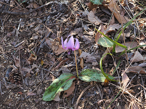 | 特徴など:本来なら片栗粉のカタクリはこちらだが現在はジャガイモのでんぷんとなっている。春の花として山野や山中に咲く花で、一時は乱獲などで自生地は激減したという。今は植栽や種まきなどをして、手厚く保護されているようだ。葉が一枚のときは花は咲かない。葉の模様も個体差があるようだ。(写真:国内) |