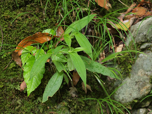 販売しているものを見るのが多い中で、郊外や自生地で本来生えているものを見つけるととても嬉しいものです。自分の庭先ではないホトトギスもそうです。他の草などにまぎれてわかりにくい季節があって、花が咲く頃にその姿を見つけるといいもんです。(写真:国内)