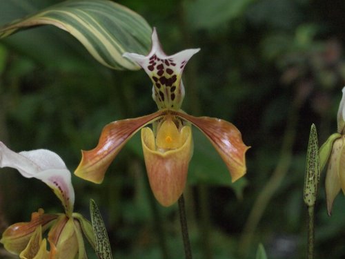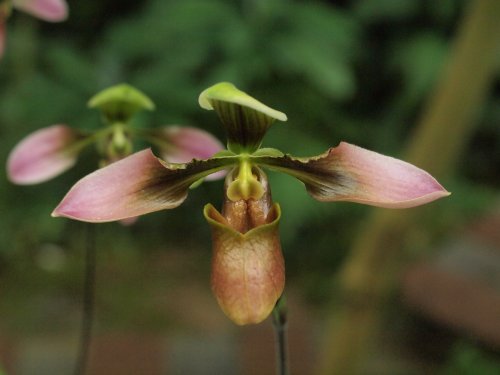 パフィオペディラムは全般的にシックな色合いのものが多く、和風にも合う。 英名:ladys slippers