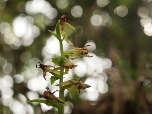 気が付かなったが上記にマイサギソウがあるが距が上に向かっている。こちらは下向き。残念だが花はなかった。(写真:国内)