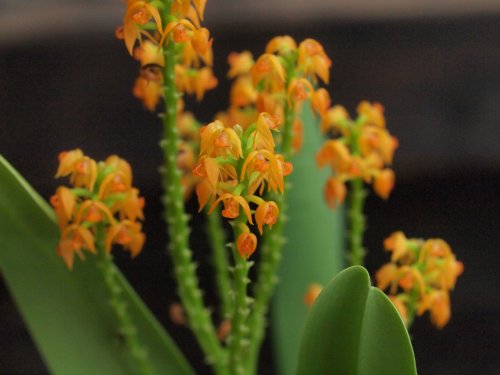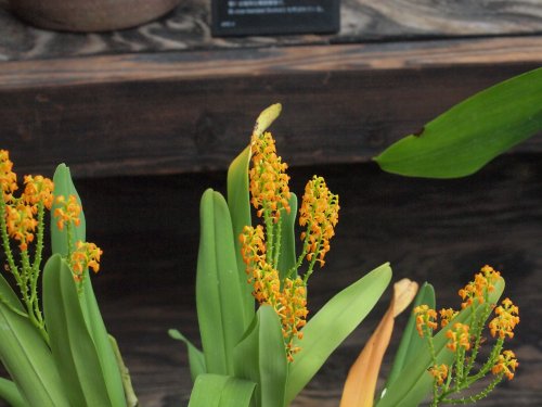 オレンジ色の小さい花を咲かせるラン。(写真:国内)