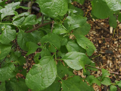 雌雄異株。クロウメモドキより葉が大きい。(写真:国内)