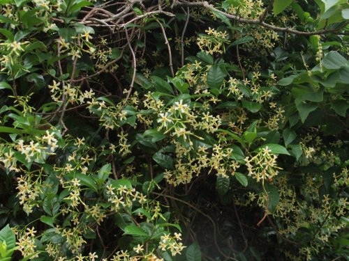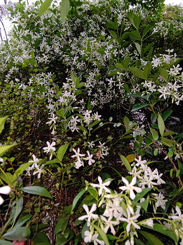 スタージャスミンの名で販売されているテイカカズラの仲間。(写真:国内)