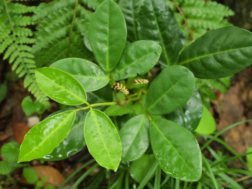 常緑広葉樹林の林床に自生する低木。(写真:国内)