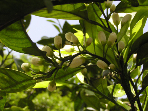 ’ポンデローサ(Ponderosa)’葉が楕円で花が大きい。果皮はざらざらしている。 (9月撮影:国内) |