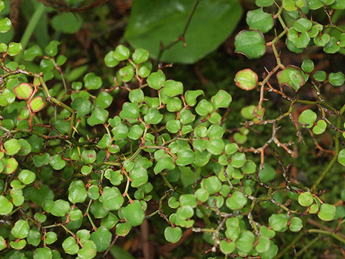 葉はやや肉厚だが他の種に比べ光に透かすと葉脈全体がよく見える。弦が長く伸びている部分もあるが目につく枝の先端に近いところは、小枝が長く伸びていることも多い。実は黒く熟す。(写真:台湾)